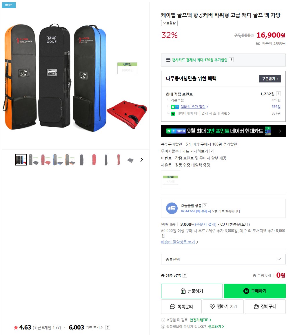 추천 제품 : N쇼핑 "케이필 골프백 항공커버 바퀴형"